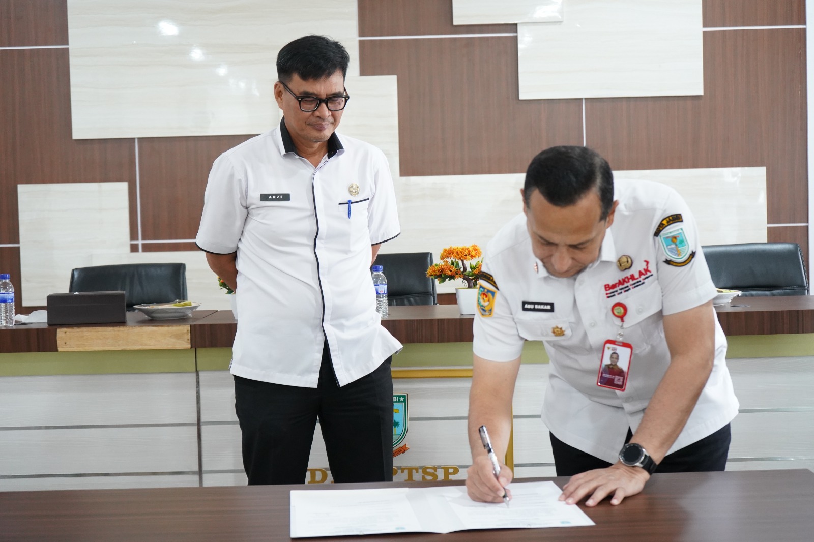 Kegiatan ini turut dihadiri oleh Sekretaris DPMPTSP Kota Jambi, Juairiah, S.Ag, M.Si, Kepala Dinas Kearsipan dan Perpustakaan Kota Jambi, Arzi Efendi, S.H, serta Kepala Dinas Pemadam Kebakaran dan Penyelamatan Kota Jambi, Mustari Affandi, A.P., M.E. Hadir pula perwakilan dari Bagian Hukum dan Inspektorat Kota Jambi sebagai bentuk pengawasan dan transparansi pelaksanaan kegiatan.