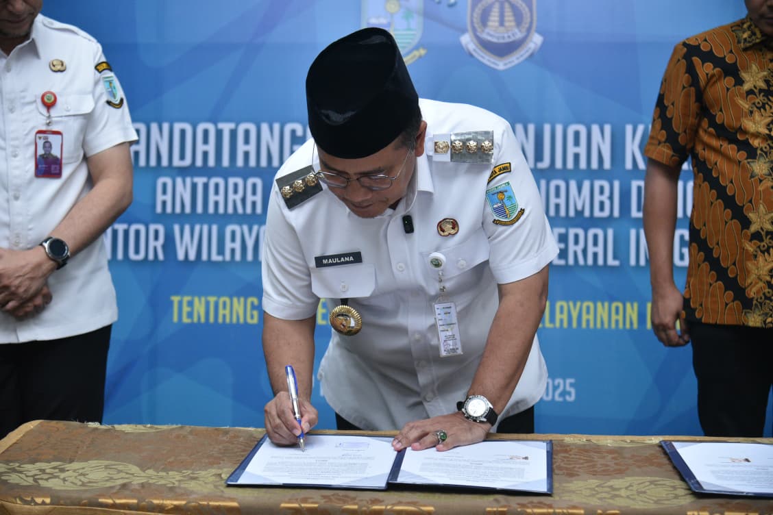 Kota Jambi — Pemerintah Kota (Pemkot) Jambi bersama Kantor Wilayah Direktorat Jenderal Imigrasi Jambi resmi menandatangani Perjanjian Kerja Sama tentang Penyelenggaraan Mal Pelayanan Publik (MPP) Kota Jambi, sekaligus meluncurkan Layanan Keimigrasian di MPP Kota Jambi, Rabu (08/10/2025).